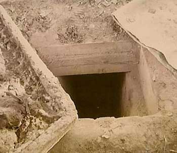 Iraqi president Saddam Hussein in a dirt hole under a farmhouse near his