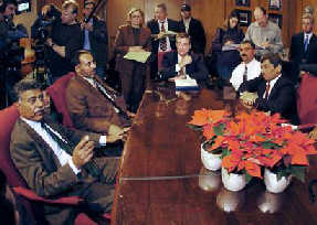 Hanny Megally, of the International Center for Transitional Justice in New York, said it would be hard to imagine that any trial would be ready for prosecution before the end of 2004. "We would be very concerned to see a speedy trial within weeks or months," he said. "The capacity of the Iraqi judiciary is clearly not up to what will be necessary for a major trial. They will need to be brought up to speed." Investigators who have yet to be appointed will have to sift through documents — 300 million of them at last count, according to Noor al-Din — and examine evidence including some 270 mass graves that won't even begin to be exhumed until the end of January. The prosecution will have to draft a strategy, deciding which cases stand the best chance of convicting a man whose regime, by the most conservative estimates, killed 300,000 men, women and children during his 23 years as president. "If they want to try someone like Saddam for all the crimes that have been committed, we could end up with a 10-year trial," Megally said. But members of the Governing Council, a 25-member body appointed in July to rule Iraq, predicted a quick trial — and a quick execution, as soon as Iraq's occupiers, who suspended the death penalty, pass sovereignty to a new Iraqi government. "We will get sovereignty on the 30th of June," al-Rabii said. "I can tell you, he could be executed on the 1st of July." Another council member, Ahmed Shya'a al-Barak, told Iraqi television a death sentence could be handed down even sooner, before the suspension of executions expires. "The court could sentence Saddam Hussein and execute him later," he said, adding: "The least punishment Saddam Hussein should get is the capital punishment." Annan, speaking at the United Nations, said he was encouraged by U.S. assurances that the former Iraqi dictator would be treated humanely — even though he never accorded such treatment "to those who fell into his hands." But he cautioned against the death penalty. "In all the courts we have set up, (U.N. officials) have not included death penalty," Annan said. "And so as secretary-general and the U.N. as an organization are not going to turn around and support a death penalty." Despite their bravado, the council members pledged to conduct the trial under international legal standards, saying any conviction would stand up to scrutiny. "All the international standards should be implemented," al-Rabii said. "He has to be given the right to employ the best lawyers in the world if he wants." The current president of the council, Abdel-Aziz al-Hakim, said in Paris the tribunal would treat Saddam fairly. "The rights of the accused will be protected," he said. The human rights activists said the council members' rush to trial could be an emotional reaction that will temper with time. "I imagine that in the light of day, those who actually have to martial the evidence may make them realize that the timeframe is not realistic," Sirkin said.