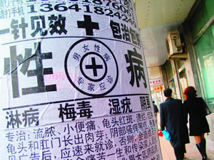 "However, such employment fliers can be seen almost everywhere," said Yang Cunyi, head of the team. "Many of the clinics claiming to cure venereal diseases may be operating without licences."