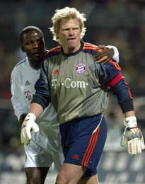 Stefan Blank gave the home side a deserved lead in the 34th minute with a long-range effort which caught Bayern goalkeeper Oliver Kahn off-balance. Aachen had been asking all the questions of a Bayern defence which lacked organisation throughout the first half. Cristian Fiel forced a sensational save out of Germany's number one shot-stopper having found a gaping hole in the Bayern backline before Blank gave Aachen a deserved lead. However, Bayern punished the hosts for their failure to convert more than one of their many chances when Michael Ballack headed the equaliser in first-half stoppage time. Bayern came back into the game in the second 45 minutes and went close through Owen Hargreaves and Roy Makaay before Aachen grabbed a goal on the break through Meijer. The much-travelled striker finished off good work from another Bundesliga veteran, Bachirou Salou, to head the home side back in front with only 10 minutes remaining. Despite throwing men forward for the last 10 minutes, Aachen held on to secure the memorable victory which puts them into the hat alongside Werder Bremen, Borussia Moenchengladbach and VfL Lubeck for the semi-final draw.