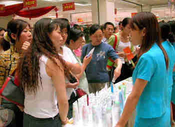 | | | | | | | | | | | | |  | | | An individual investor looks at the screen of stock prices in a stock exchange in Shanghai. [newsphoto.com.cn] | | | | | | | | | | | | |  | | | The picture shows a body painting advertisment board in a department store in Shanghai, July 7, 2003. Body painting has become increasingly popular among young people this year. [newsphoto.com.cn] | | | | | | | | | | | | |  | | | A make-up promotion draws in customers Tuesday at Victoria Department Store in North China's Inner Mongolia Autonomous Region. Business in the region is gradually recovering, after 20 days with no new SARS cases reported. [newsphoto.com.cn] | | | | | | | | | | | | |  | | | A man looks at a bough bearing lychee fruits in Conghua, South China's Guangdong Province. A tourism festival started Wednesday in the city. The eight-day event, which is based on the city's reputation for succulent lychees, aims to boost the development of its tourism industry and to lure investment for its economic development. [newsphoto.com.cn] | | | | | | | | | | | | |  | | | A model stands against an exhibit at the third Shenyang International Automobile Industry Expo, which opened on July 3, 2003 in the capital of Northeast China's Liaoning Province. More than 450 motor manufacturers are attending the six-day Shenyang expo at the Shenyang International Exhibition Centre. The expo is expected to attract more than 200,000 visitors.[newsphoto.com.cn] | | | | | | | | | | | | |  | | | Farm technician Wang Yuzhi, together with her colleague, records the yield of each plant at a vegetable garden in Shouguang in East China's Shandong Province. The city has been growing increasingly high-grade vegetables in recent years by introducing new varieties and adopting advanced technologies and strict management procedures. The small city currently has 2.66 hectares planted with green vegetables. It has an annual yield of 2 billion kilograms. [newsphoto.com.cn] | | | | | | | | | | | | |  | | | Japanese carmaker Nissan's new model Bluebirds are on show in Sanya, South China's Hainan Province, on Sunday. The luxury car, produced by Dongfeng Motor Co Ltd, a joint venture of Dongfeng Motor Corp and Nissan Motor Co, has already attracted a great deal of interest from customers in Sanya. [newsphoto.com.cn] | | | | | | | | | | | | |  | | | Dongfeng Motor Co, a joint venture of Dongfeng Motor Corp and Japan's Nissan Motor Co, launches its first passenger car -- the Nissan "Sunny'' -- in Guangzhou Monday. [newsphoto.com.cn] | | | | | | | | | |