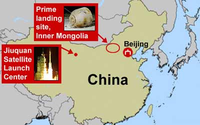 | | | | | | | | | | | | |  | | | Launching and landing site | | | | | | | | | | | | |  | | | Shenzhou II flies over Jiangxi Province February 2, 2001. [newsphoto.com.cn] | | | | | | | | | | | | |  | | | Technicians monitor the Shenzhou III after it is successfully launched March 25, 2002. [newsphoto.com.cn] | | | | | | | | | | | | |  | | | Technicians celebrate the successful landing of Shenzhou II January 16, 2001. [newsphoto.com.cn]