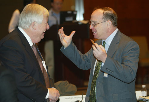 Updated: 2008-01-10 10:48 ![]() Energy and trade officials and business executives share a light moment at the China-US clean energy forum held in Beijing, January 9, 2008. The US clean energy trade mission's 17 CEOs, led by US Commerce Assistant Secretary David Bohigian, visited Beijing yesterday. The mission is holding talks with Chinese energy and trade officials and company executives. [China Daily] |