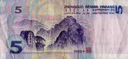 Renminbi is the official currency of China.The basic unit is yuan, which notes in denominations of 5, 10, 50 and 100 yuan and notes in values of 1 yuan, 5 jiao and 1, 2 and 5 fen. A yuan is divided into 10 jiao and a jiao is subdivided into 10 fen. There are two kinds of 100 yuan you may see: