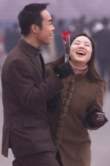 Valentine's Day is for lovers. Yet it has not been always so as it is a relatively new holiday for Chinese - gaining ground quickly in the last decade. And it is mostly the young and the trendy that are propelling it into mainstream acceptance. Imported holiday Beneath the surface of a brand-new imported holiday are the cross-currents of cultural fusion and the power of commercial interests. Love can be pure and simple, but celebrating love takes a whole mechanism of sociological evolution and the support of myriad businesses. Roses, chocolates, candlelight dinners. These are the images of Valentine's Day and these are what appeal to people in China, especially the young generation. The popularity of this holiday has confounded many an old-timer. However, citing Westernization as the sole driving force is somewhat simplistic. The fact that it comes from the West certainly has a lot to do with its fast acceptance. Chinese tend to have the mentality that "outside monks chant the better prayers." It carries mystique, which is essential to the build-up of romantic ambience. In their attempt to explain the origin of Valentine's Day, scholars have offered three vastly distinct versions that cover all bases. One comes from England and has something to do with birds mating. The other two trace the beginning all the way to the Roman empire. The more popular one of the two, according to experts, is about a priest in the third century who secretly held weddings for lovebirds when the tyrant of the day, in an attempt to conscript all men of a certain age, banned all weddings. When he learned of the priest's act of defiance, he did not hesitate to arrest and execute the holy man. That was on February 14 and the priest's name was Valentine. The day was later canonized by lovers to commemorate the great sympathizer of love. Just another occasion Whether this is history or myth or a combination of both, most Valentine's Day celebrants in China do not seem to know or care. Like Christmas, Valentine's Day has descended on the Middle Kingdom stripped of its historical implications. As a matter of fact, many lovers treat Christmas as another occasion to be together and have fun, in other words, something in the same vein as Valentine's Day. They may not be aware of its religious origin and certainly do not know the lyrics of the carols. But the pagoda-shaped tree with a lot of baubles is no doubt a big attraction. The irresistible lure of Valentine's Day lies in its components that are compatible with middle-class lifestyle newly prevalent in urban China. Take candlelight dinners, for example. Thirty years ago it would never have been seen as romantic because power outages, and the resultant candlelight meals, were commonplace. Almost everything about Valentine's Day, including sending roses, is not part of the traditional Chinese dating ritual. Therefore, it is still devoid of ennui and nonchalance that is often associated with native customs. Since it's Western in source, it carries an exotic quality and upward mobility. In an online survey, more than three quarters of respondents disagreed that Valentine's Day is "vulgar" or "should be ignored." If anything, it is perceived by most people as "in vogue." Tradition forgotten While Valentine's Day is being embraced by more and more people, China's own day for lovers is on the decline in terms of popularity. To begin with, many people don't even know that such a holiday exists; and then there are two days competing for this honour. Lantern Festival, the 15th day of the first month on the lunar calendar, is considered by some as China's Valentine's Day. But it is in dispute. Some say it is a fallacy and attribute it to its proximity to Valentine's Day because it usually falls in early or mid-February. The other contender is half a year away, in August. Qixi, denotes the seventh day of the seventh month on the lunar calendar. It is the day when a pair of mythological lovers, Niulang and Zhinu, have their annual meeting across the heavenly river of the Milky Way. Over the centuries, Qixi was observed by lovers and everyone else. Customs evolved, but the theme of love conquering all has remained to this day. However, in modern days, Qixi is commemorated mostly in China's Taiwan Island. It may be an overstatement to say it is in decline because it has never caught fire with the current generation in most parts of the country. Experts attribute the growing indifference towards the home-born holiday to its cultural inferences. In the legend, the two lovers are forcibly separated by her father, the celestial emperor, who later yields a little by allowing them to meet once a year. Yet nobody dares to challenge the emperor's authority because in feudal times, one's obedience to parents took precedence over loyalty to the spouse. Qixi tale The Qixi tale embodies several layers of rebelliousness: The daughter's free will to love someone without the consent of her parents, an "upper-class" girl overcoming the social barrier to marry a poor farmer, and a fairy princess giving up her eternal life to bond with a mere mortal. However, it is essentially a tragedy because they have to pine for each other on 364 days of a year. Qixi immortalizes one moment that is ephemeral and fast-fleeting. As the poem Magpie Bridge (que qiao xian) comments, "When love is ever-lasting, why should we care about all the mornings and all the nights?" But Valentine's Day, to those blissfully ignorant of the old, equally sad source story, represents a "seize-the-day-while-you-can" spirit. It gives vent to affection and passion, which Qixi and hundreds of other Chinese love stories from the ancient times have couched in euphemism and restrained expressions. Valentine's Day, in the eyes of the young, is not so much a substitute for Qixi, but rather an extension of the love theme as well as a more accurate reflection of their more candid ways of emotional display. Push of commercialism The happiest p