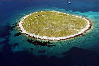 "For sale! Island in the Sibenik archipelago, partly under pine trees, pebble beach, three million dollars."