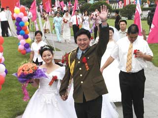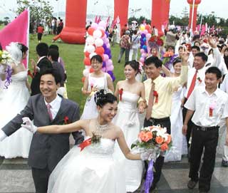 102 couples in Qingdao, East China's Shandong Province July 6, 2004.