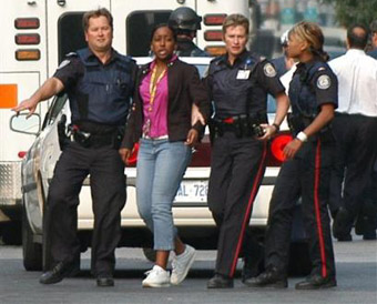 "We had a situation that is very, very volatile, extremely dangerous. There was no choice," Fantino said. "(Police) eliminated a very serious threat to citizens and themselves." The provincial Special Investigations Unit, which probes all cases of serious injury or death involving police, was called in to review the killing. Police cleared out the area, leaving the normally bustling hub almost deserted at a time when thousands of workers make their way to their offices. Main roads were in gridlock as cars were diverted away from the scene, a stone's throw from the skyscrapers that populate Toronto's financial district. The GO bus station at Union Station was closed for several hours but subway traffic was largely unaffected. Premier Dalton McGuinty expressed relief that the hostage was unharmed but Community Safety Minister Monte Kwinter said emergency procedures around Union Station, the central point for all rail traffic in the region, may need to be reviewed.