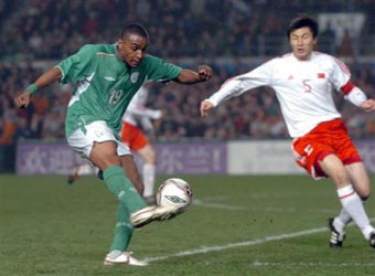 Ronaldo warned: 'Wear lots of shin pads'. "It was a very good finish - it was hard to get the ball in behind them with their 5-4-1 formation," Ireland manager Brian Kerr said. "From where we were it took a while to come down and go in." Ireland, showing six changes from the side which drew 1-1 with Israel in World Cup qualifier in Tel Aviv on Saturday, made most of the running in a forgettable first half but failed to make the most of their chances. Stephen Elliott, winning his second cap in attack alongside Robbie Keane, had a shot blocked in the penalty area by Chinese skipper Li Weifeng, and midfielder Kevin Kilbane's header was saved by Li Leilei. China, who lost 3-0 in Spain at the weekend, passed the ball neatly at times, but with Li Yi playing alone up front posed little attacking threat. "They worked hard, and they defended quite well," said Kerr. "I thought the game was all right. There were lots of misplaced passes and mistakes with the ball bobbling around." There was less than 10 minutes remaining in the first period before the visitors threatened the Irish goal, but when it came it was the best chance of the half and goalkeeper Paddy Kenny did well to parry Zhao Junzhe's shot past his right hand post. Just after the restart Liam Miller, a halftime replacement for Chelsea's Damien Duff, made a solo run through the Chinese defence, but could only manage a weak shot at the keeper. Fullback Sun Xiang nearly put the visitors in front when he latched on to a long ball out of defence to shoot just wide. The game appeared to be heading for stalemate when, with less than 10 minutes to go, Morrison received the ball on the edge of the penalty area and sweetly lobbed it over the goalkeeper. Graham Kavanagh had a chance to double the advantage minutes later but his shot was tipped over the crossbar by Li Leilei, and at the other end Wang Liang's injury time freekick drew a smart save from Kenny.
