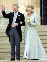 Commentators praised the outfit for its simplicity. It was the first of several worn by the duchess on her wedding day. For the blessing in St George's Chapel, she opted for a floor-length, porcelain blue silk coat dress embroidered with gold, changing back into the first dress later. Arriving in Aberdeen at the start of her honeymoon, Camilla, whose official title in Scotland is Duchess of Rothesay, wore a cerise coat with Rothesay tartan trim complemented by a tartan shawl, black court shoes and black handbag. Elizabeth Emanuel, who designed the wedding dress worn by Diana, Princess of Wales, said of Camilla's choices: "She looked very chic, very elegant, perfect for the occasion." The handmade wedding outfits were designed by Robinson Valentine, the dressmakers based in Kensington, west London. They took 11 weeks to complete. Anna Valentine, the designer, said: "We wanted a crisp, clean look with subtle detailing for the guildhall. For St George's Chapel we felt the dress should have a sense of occasion while remembering it was a blessing rather than a wedding."