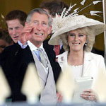 After speculation about her chosen colour the duchess opted for oyster. The coat and chiffon dress created a gentle silhouette that suited her figure. The below-knee hemline, allowed the duchess to show off her legs. The bride's matching suede shoes had a comfortable 5cm heel and she carried an ivory leather clutch bag by Launer, the royal bag makers. At her reception she wore a court shoe in pale grey shot silk designed by Linda Bennett. She kept jewellery to a minimum, opting for large diamond and pearl drop earrings and a diamond lapel pin in the shape of the Prince of Wales feathers. Philip Treacy, the Irish milliner, crafted her wide-brimmed hat from straw overlaid with French lace topped with a spray of feathers. Joanna Lumley, the actress, wore a colourful outfit in gold brocade with a wide-brimmed hat sporting a silk flower.