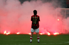 AC Milan goalkeeper Dida was hit by a flare thrown
