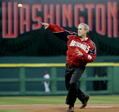 first toss with the skill of a guy who knows baseball. He was a part-owner