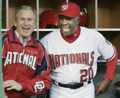 Bush emerged from the dugout in a red Nationals jacket to mostly