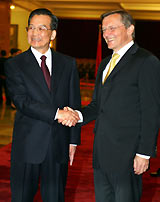 Premier Wen Jiabao and visiting Austrian Chancellor Wolfgang Schuessel witnessed the signing of the agreements following one-hour official talks. The documents included bilateral co-operation in animal quarantine and animal health, the exchange of letters concerning reciprocal exemption from taxation on revenues arising from international air transport enterprises and a memorandum of understanding (MOU) on promoting mutual investment. China and Austria established diplomatic ties in 1971. The Hainan Airline Group of China also signed an MOU with the Salzburg Economic Chamber on co-operation in tourism education and research. The local government of Binjiang District in Hangzhou in Zhejiang Province signed an investment MOU with Austria's Porsche Holding company. During talks, Wen raised a three-point proposal to further bilateral ties, including the keeping of high-level contacts, encouraging Austrian companies to make investment in China and increasing exchanges in sectors of culture, education, science and technology. Schuessel arrived in Beijing on Tuesday night to start a seven-day official visit to China. On China's relations with Europe, Wen told Schuessel that the European Union is both a full strategic partner and China's largest trade partner. He expressed appreciation for Austria's "positive attitude" on the lifting of the EU's arms embargo on China. Schuessel said the economies of the two countries are strongly complementary and Austria is willing to help further the relationship between China and Europe. Austria will take the rotating EU presidency in January 2006. The two leaders also talked about the Taiwan issue and Austrian support for China's reunification efforts. Besides Wen, Schuessel also met Vice-President Zeng Qinghong yesterday. Schuessel yesterday visited Peking University where he delivered a speech on the role of Austria in Europe and relations between Austria and China. Trade between the two sides rose to more than 3 billion euros (US$3.87 billion) in 2004.