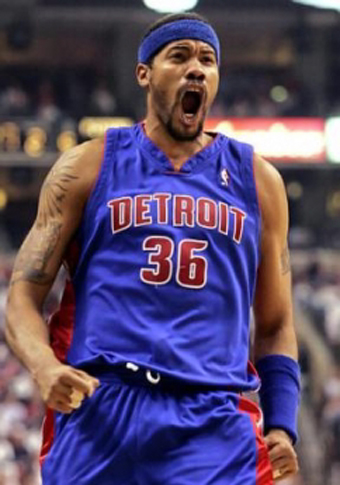 Detroit Pistons' Rasheed Wallace (36) reacts
