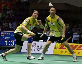 Indonesia's Lilyana Natsir and Nova Widianto in the finals of the Sudirman