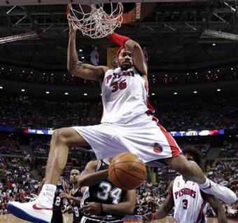 Detroit Pistons' Rasheed Wallace dunks the ball