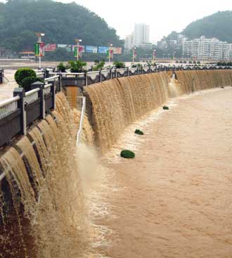 Wuzhou, Guangxi Zhuang Autonomous Region June 22, 2005. The water level of the