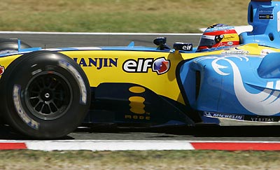 Fernando Alonso wanted to savor the moment. The Renault driver had time to slow down in front of the stands filled with blue-and-yellow Renault supporters and hold up five fingers - indicating his number of victories this season. Alonso won the French Grand Prix Sunday in a dominant display from the pole position, leading throughout and only being headed when he made his three pit stops.