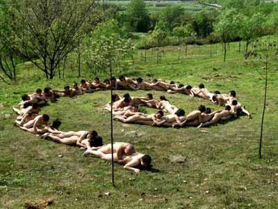 At four o' clock on April 13, 41 male and female students from the Chengdu Academy of Fine Arts stripped naked and arranged their bodies into the @ shape.