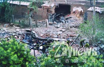 A huge explosion in a park in Taiyuan, north China's Shanxi Province killed one 8-year-old girl and injured 33 others July 21, 2005. At about 14:10, the explosion occurred at a two-storey building in the park which is frequented by children, particularly during school breaks. The cause of the explosion is unknown and under investigation. [daynews.com.cn]