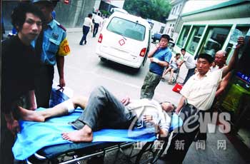 One of the injured is moved to a local hospital in Taiyuan, Shanxi Province for treatment July 21, 2005. [newsphoto]