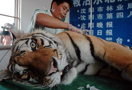 Surgery on tiger to remove tumor (newsphoto) Updated: 2005-07-26 07:51
