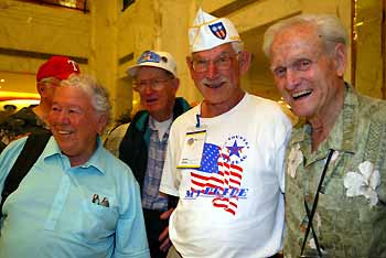 Former members of the American Volunteer Group, commonly known among the Chinese as the Flying Tigers, arrive at the Beijing Capital International Airport July 12, 2005. [newsphoto]