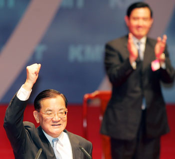 Lien Chan (L, front), the outgoing chairman of