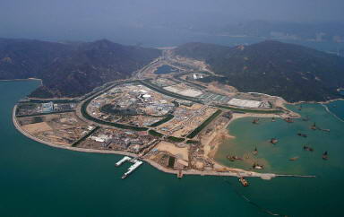 The park is a 30-minute subway ride from central Hong Kong, and it's served by its own public rail line _ the only one in the world specially built for a theme park. The train has windows shaped like Mickey Mouse's head and the subway cars sport velvet theater seats and statues of Disney characters. The project was announced in 1999 and construction began in 2003. Disney's other parks are Tokyo, Paris and the U.S. states of California and Florida.