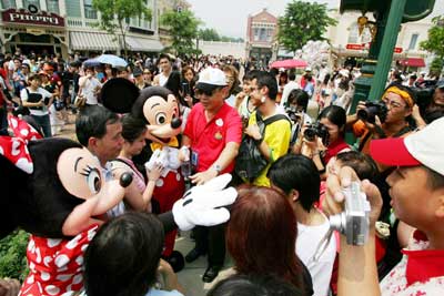 "It's going to be seen by, I'm told, as many as a billion people, which is tremendous," Iger told The Associated Press. Michael Eisner, Disney's chief executive officer, said China and Disneyland will be a perfect match because they both value families. "You go to the park and you see mothers, daughters and kids and grandparents. The family unit in China is unbelievably strong. It's not just Hong Kong, it's the Chinese mainland," Eisner said. Hong Kong and Disney struck a deal to build the park in 1999 -- just two years after the former British colony returned to Chinese rule. The city had been battered by the Asian financial crisis, and desperately needed a new project to boost its spirits and troubled economy. Disneyland says it employs 5,000 people and will draw 5.6 million visitors in
