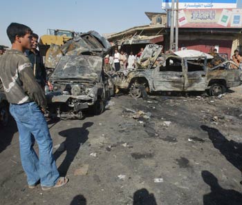 of a suicide car bomb attack in Baghdad September 14, 2005.