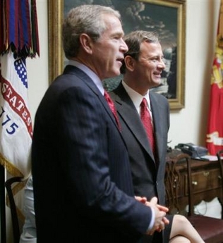 President Bush and Chief Justice nomine John Roberts watching the Senate