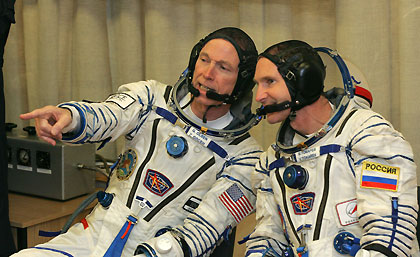 Spacecraft Soyuz TMA-7 with the ISS crew of U.S. space tourist Gregory Olsen,