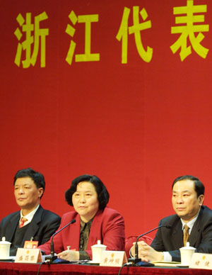 Beijing March 5, 2006. They answered questions about Zhejiang's social and
