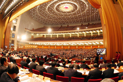 Members of the Chinese People's Political Consultative Conference have their second plenary session at the Great Hall of the People in Beijing March 8, 2006. [Xinhua]
