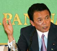 Japanese Foreign Minister Taro Aso speaks to reporters at a press conference in Tokyo Wednesday, March 8, 2006. [AP]