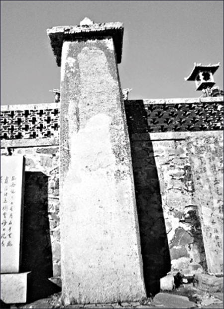 No Word Tablet in front of Yuhuang Temple (or Jade Emperor Temple) in Taishan Mountain, earns its name from the absence of characters or paintings on the stone. |