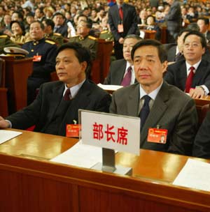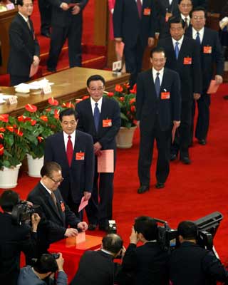 | Jiang Zemin and Hu Jintao join panel discussion of the Army delegation |