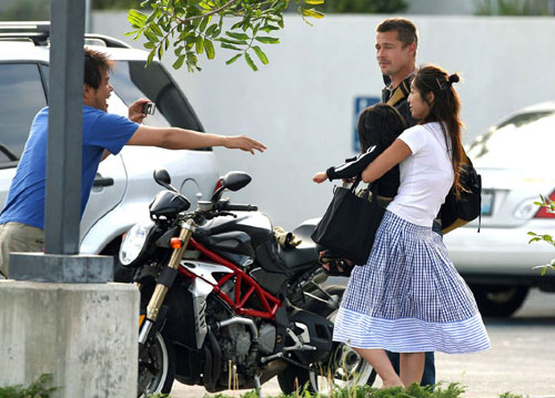 After a trip on his custom-made motorcycle, Brad Pitt took the