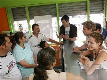 In this photo released by United Nations Refugee Agency (UNHCR), Goodwill Ambassador Angelina Jolie, right, and actor Brad Pitt, second from right, meet with a Colombian refugee family in San Jose, Costa Rica, Monday, Dec. 25, 2006. Actress Angelina Jolie spent Christmas Day with refugees in Costa Rica as part of her work as a goodwill ambassador for the United Nations High Commissioner for Refugees, the agency said. Jolie arrived Monday to visit a group of mostly Colombian refugee children and families and to meet Costa Rican officials, the UNHCR said in a statement. There are about 11,500 refugees in this Central American country. Most of them fled Colombia because of a conflict between leftist guerrillas, soldiers and paramilitary forces. "The conflict in Colombia is the greatest humanitarian tragedy in the Western Hemisphere, but it receives very little international attention," the Oscar-winning actress said after she arrived in San Jose. "My Christmas message to Colombian refugees and to the millions of displaced people in Colombia is that the world has not totally forgotten them." An estimated three million Colombians have been forced from their homes by more than two decades of armed conflict, and most are internally displaced, essentially refugees in their own country. Another 500,000 have fled to other countries in the region. Together, the UNHCR said they make up the largest single population of concern anywhere in the world. UNHCR said this was Jolie's second trip to the region since she became a goodwill ambassador for the refugee agency in 2001. It said she went to Ecuador in 2002 and later wrote a personal journal of her meetings with Colombian refugees in that country.