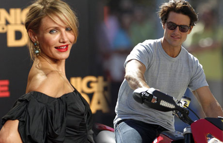 U.S. actor Tom Cruise (R) kisses his wife actress Katie Holmes during the world premiere of his film "Knight & Day" in Seville June 16, 2010.[Agencies]