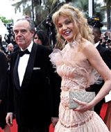 Frederic Mitterrand and actress Arielle Dombasle arrive for the screening of "Robin Hood"