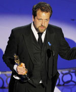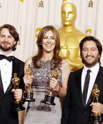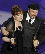 Mindy Hall, Barney Burman and Joel Harlow accept the award for best makeup