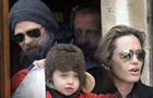 Brad Pitt and Jolie walk aboard a taxi boat with their son and daughter in Venice Feb 16, 2010.
