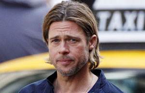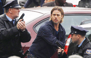 Actor Brad Pitt films "World War Z" in Glasgow, Scotland August 18, 2011.