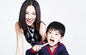 Chinese actress Dong Jie and her 3-year-old son pose for photograph for Vogue Magazine.