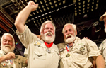 Fawcett raises his fist after learning he has been selected the winner of the 2012 "Papa" Hemingway Look-Alike Contest in Key West.