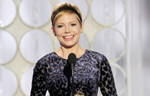 Michelle Williams poses on the red carpet as she arrives at the 69th annual Golden Globe Awards in Beverly Hills, California January 15, 2012.